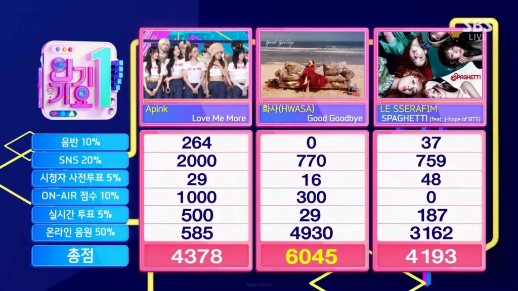 ในการออกอากาศของ Inkigayo เมื่อวันที่ 18 มกราคมที่ผ่านมา การแข่งขันชิงอันดับหนึ่งดุเดือดสุด ๆ เมื่อมีผู้ท้าชิงตัวแรงถึงสามเพลง ได้แก่ “Love Me More” จาก Apink, “Good Goodbye” ของ Hwasa และ “SPAGHETTI” จาก LE SSERAFIM ที่ได้ j-hope วง BTS มาร่วมฟีเจอริง เพิ่มดีกรีความร้อนแรงแบบคูณสาม ทว่าท้ายที่สุด ชื่อของ Hwasa ก็ถูกประกาศขึ้นเป็นผู้ชนะ ด้วยคะแนนรวมสูงถึง 6,045 คะแนน ทิ้งคู่แข่งแบบสมศักดิ์ศรี