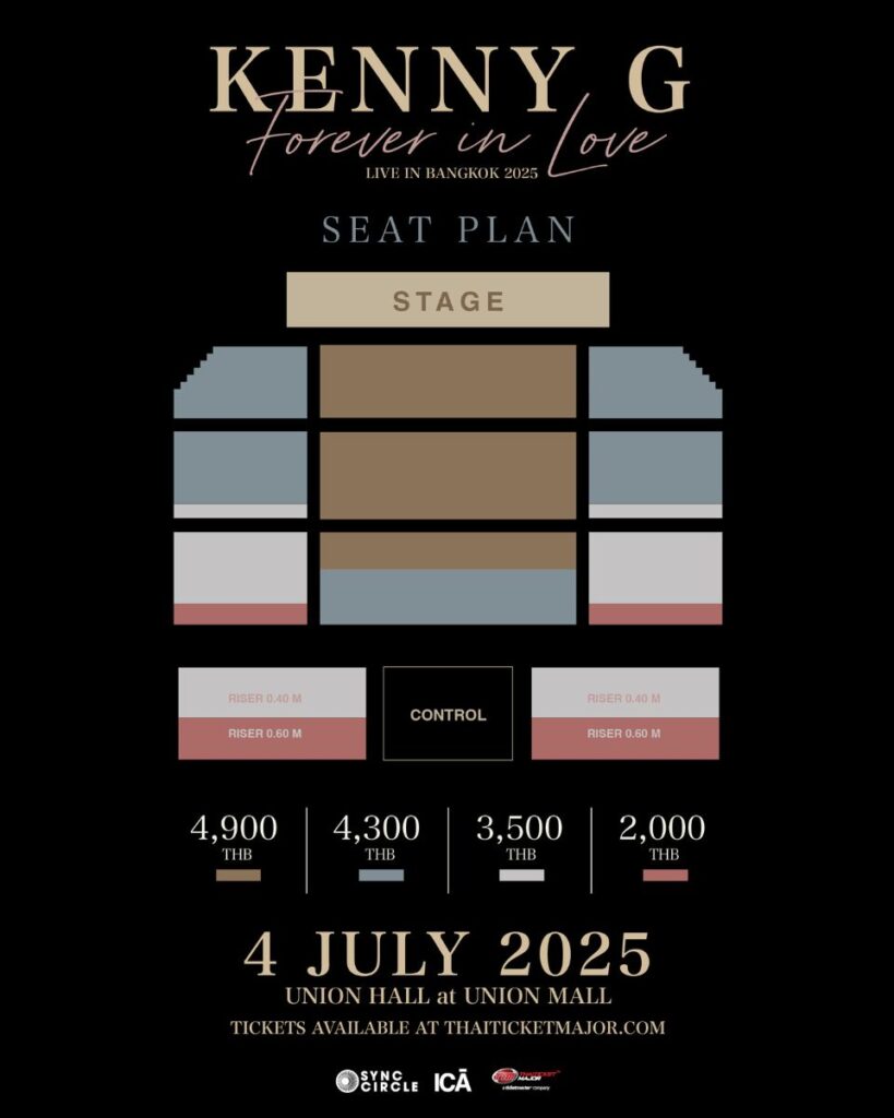 เตรียมพบการกลับมาของสุนทรียภาพทางดนตรี จากเสียงแซ็กโซโฟนของ Kenny G  (เคนนี่ จี) นักดนตรีสมูธแจซระดับตำนาน เจ้าของเพลงฮิตตลอดกาล อาทิ “Forever in Love,” “Songbird” และ “Silhouette” เจ้าของรางวัล Favorite Adult Contemporary Artist จาก American Music Awards และ Best Instrumental Composition  จากเวที Grammys กับการแสดงสดแบบฟูลเซ็ตให้ทุกท่านได้ดื่มด่ำกับประสบการณ์ทางดนตรีชั้นเลิศที่จะติดตรึงใจในใจอีกนาน