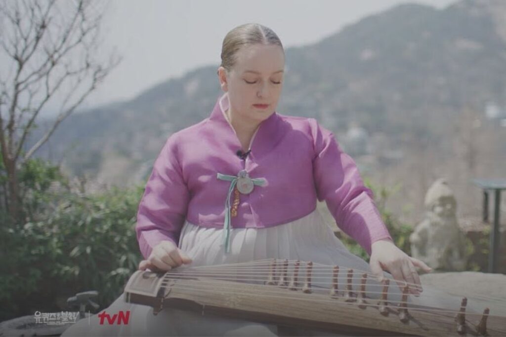 🌟 คนแรกที่เปิดรายการด้วยพลังความสตรอง คือ ศาสตราจารย์โจเซลิน คลาร์ก หรือที่คนเกาหลีเรียกกันติดปากว่า “อาจารย์โจจากอะแลสกา” ผู้หญิงต่างชาติคนแรกที่คว้าสิทธิ์การเป็น “ผู้สืบทอดกายากึม” ดนตรีเกาหลีดั้งเดิม! จากเด็กสาวที่เติบโตท่ามกลางหิมะในอะแลสกา สู่การเดินทางเรียนดนตรีพื้นบ้านเอเชีย ทั้งโกโตะจากญี่ปุ่น, กู่เจิงจากจีน และสุดท้ายเธอตกหลุมรักกายากึมของเกาหลีเข้าอย่างจัง