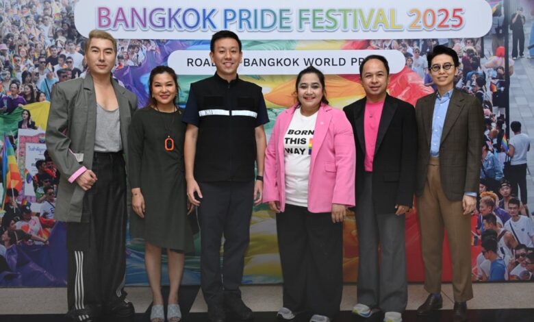 THAILAND ONLY ณ ที่แห่งนี้จะเต็มไปด้วยสีสันและความสนุกแห่งเทศกาลที่ LGBTQIAN+ ทุกคนรอคอย “Bangkok Pride Festival 2025” ปักหมุดหมาย “กรุงเทพมหานคร” สู่ศูนย์กลางความหลากหลายทางเพศระดับโลกโดย คุณวาดดาว – อรรณว์ ชุมาพร ประธานและผู้ก่อตั้ง บริษัท นฤมิตไพรด์ จำกัด ในนามของคณะทำงานบางกอกไพรด์ ร่วมกับ กรุงเทพมหานคร จัดแถลงข่าว Bangkok Pride Festival 2025 อย่างเป็นทางการ พร้อมทัพศิลปินดารา อาทิ เก่ง ธชย ประทุมวรรณ ร่วมด้วยนักร้องนักแสดง ปาย – ฉัตรนภา เขียวขำ ,เจมส์ – พงศภัค ราชาภรณ์ ,ฉลาม – สยาม พิพัฒน์เจริญวงศ์ , ต๋อง ธนายุทธ ฐากูรอรรถยา / ซิน ซิงกูร่า / คุณชายอดัม มรว.เฉลิมชาตรี ยุคล / แองเจลิกา อาร์สยาม และสองหนุ่มหล่อคู่วาย แบงค์ ธรณินทร์ มโนสุดประสิทธิ์ กับ นิว ชุณวรรณ หมั่นดี จาก ซีรีส์เพียงสบตา , แอนดอย ปรียากรMISS TIFFANY 2025 ฯลฯ ร่วมเติมสีสันความสนุกภายใต้ธีม “Born This Way” ณ ห้องอเนกประสงค์ ชั้น 1 หอศิลปวัฒนธรรมแห่งกรุงเทพมหานคร รอสร้างปรากฏการณ์สุดมันส์ ตั้งเป้าผลักดันให้ “กรุงเทพฯ” เป็นศูนย์กลางความหลากหลายทางเพศระดับโลก และเป็นเจ้าภาพ World Pride ปี 2030 ได้สำเร็จ