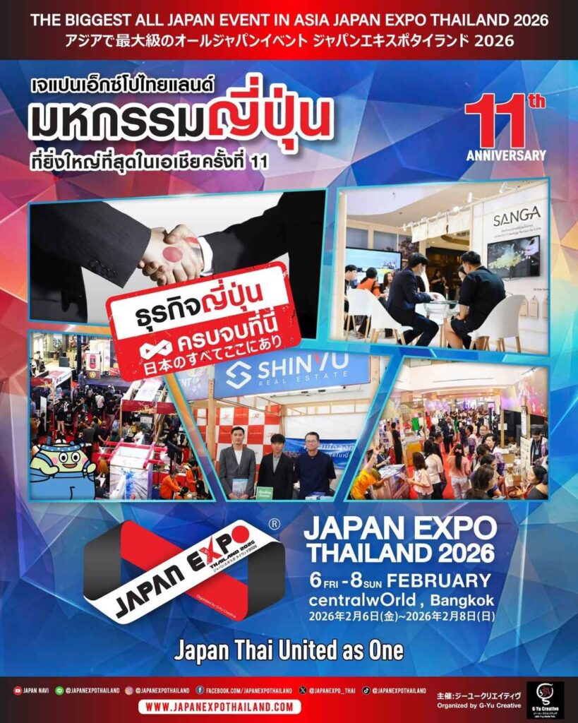 การกลับมาของงานมหกรรมญี่ปุ่นที่ยิ่งใหญ่ที่สุดในเอเชีย!! JAPAN EXPO THAILAND 2026 จัดโดย บริษัท จี-ยู ครีเอทีฟ จำกัด จำกัด พร้อมด้วยเหล่าพันธมิตรทั้งภาครัฐและเอกชน ร่วมมือกันสร้างงานมหกรรมญี่ปุ่นที่รังสรรค์ประสบการณ์เหนือระดับ เพื่อเฉลิมฉลองปีที่ 11 มหกรรมญี่ปุ่นที่ยิ่งใหญ่ที่สุดในเอเชีย จัดระหว่างวันศุกร์ที่ 6 ถึงวันอาทิตย์ที่ 8 กุมภาพันธ์ 2569 เต็มอิ่มตลอด 3 วันเต็ม ตั้งแต่เวลา 10.00-21.00 น. ณ ศูนย์การค้าเซ็นทรัลเวิลด์