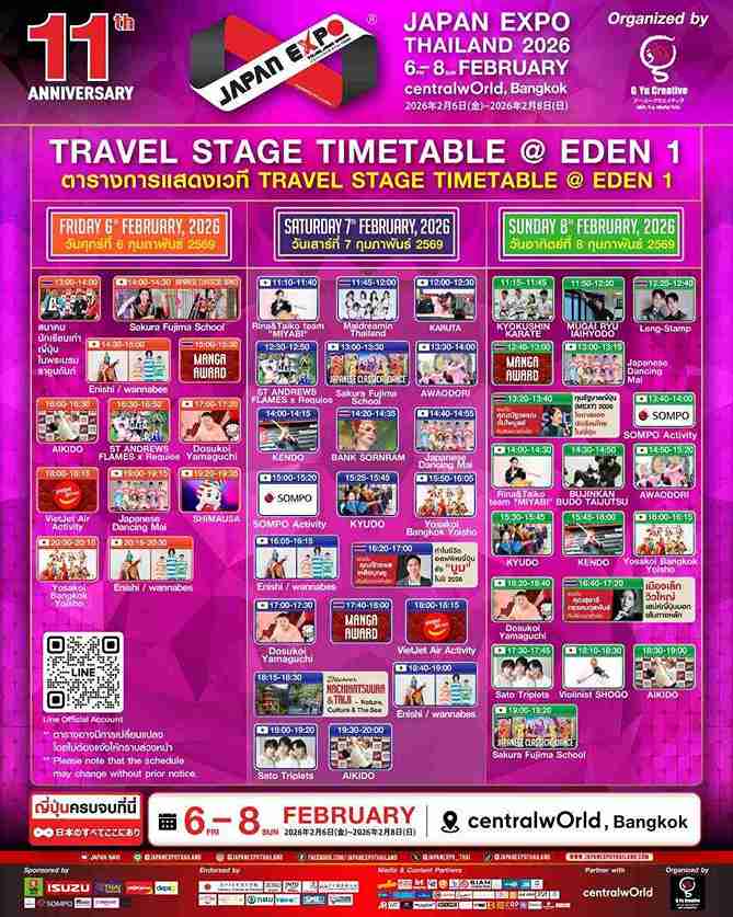 ติดตามรายละเอียดเพิ่มเติมได้ที่ www.japanexpothailand.com www.gyucreative.com Facebook : https://www.facebook.com/japanexpothailand/ IG : @japanexpothailand X : @JAPANEXPO_THAI Line@ : @japanexpothailand