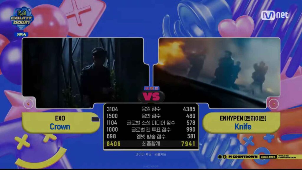 การแข่งขันสัปดาห์นี้เรียกได้ว่า “วัดกันที่ของจริง” เพราะเหลือผู้เข้าชิงเพียง 2 เพลงสุดแข็งแรง ได้แก่ “Crown” ของ EXO และ “Knife” ของ ENHYPEN ก่อนที่ผลคะแนนรวมจะออกมาแบบชัดเจนว่า EXO เหนือกว่าด้วยคะแนนสูงถึง 8,406 คะแนน คว้าชัยชนะไปแบบไม่ต้องลุ้นยาว