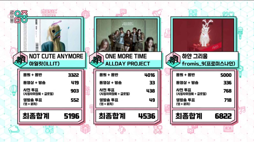 แต่สุดท้ายก็เป็นฝั่งสาว ๆ fromis_9 ที่ยืนหนึ่งด้วยคะแนนรวม 6,822 คะแนน คว้าถ้วยกลับบ้าน พร้อมภาพโมเมนต์น้ำตาแห่งความดีใจและคำขอบคุณจากใจถึงแฟนคลับที่ร่วมกันผลักดันจนถึงเส้นชัย