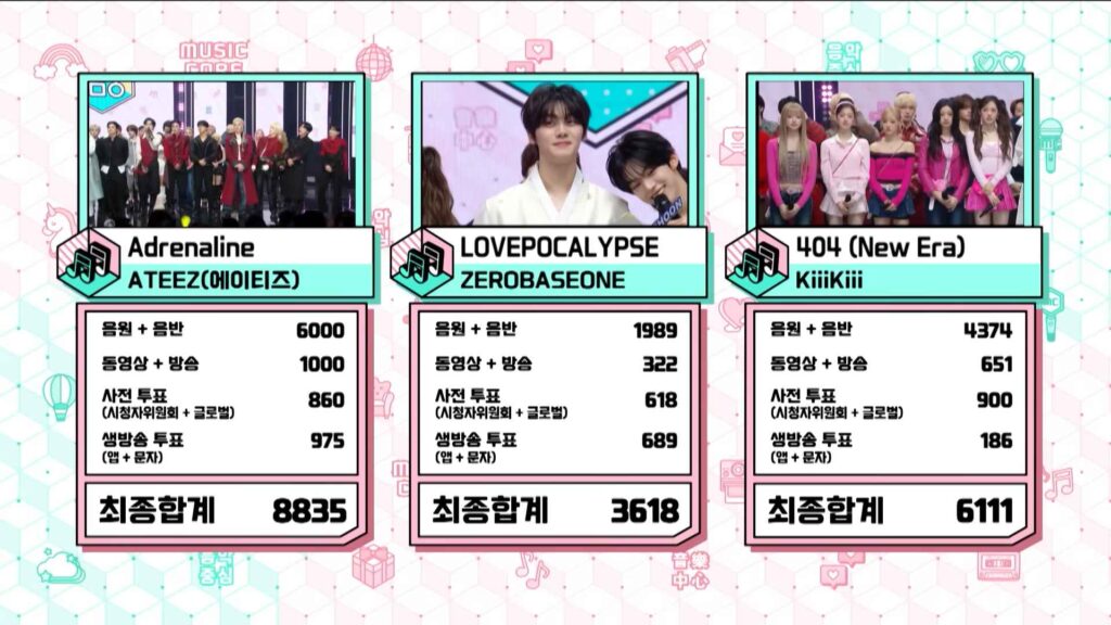 การแข่งขันสูสีทุกพาร์ต ทั้งยอดดิจิทัล คะแนนโหวต และบรอดแคสต์สกอร์ ก่อนที่ ATEEZ จะปิดจ็อบด้วยคะแนนรวม 8,835 แต้ม ทะยานขึ้นบัลลังก์อันดับ 1 ได้สำเร็จ ทันทีที่ประกาศผล สมาชิกถึงกับนิ่งอึ้ง ก่อนจะโค้งขอบคุณแฟนคลับ ATINY ที่ผลักดันจนคว้าถ้วยประวัติศาสตร์ใบนี้