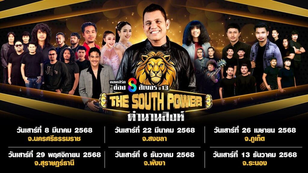 ประเดิมที่แรกเปิดฉากระเบิดความสนุกเมื่อวันเสาร์ 8 มีนาคมที่ผ่านมากับงาน “ช่อง 8 สัญจร THE SOUTH POWER ตำนานสิงห์” สุดคึกคักที่ตลาดนัด สจ.อู๊ด ถ.เพชรสุวรรณพร อ.เมือง จ.นครศรีธรรมราช มีแฟนๆ มาร่วมแดนซ์กว่าหมื่นคน โดย “ช่อง 8 สัญจร THE SOUTH POWER ตำนานสิงห์” เป็นปรากฏการณ์ความมันส์ครั้งใหม่ ตะลุยสัญจรกับ 6 จังหวัดภาคใต้ ที่จะสั่นสะเทือนภาคใต้แบบไม่เคยมีมาก่อนกับการปะทะ THE LEGEND OF SOUTH ตำนานสิงห์ใต้ รวมศิลปินชื่อดังระดับประเทศ อาทิ บ่าววี, ลาดา อาร์สยาม, ต้นข้าว อาร์สยาม, บิว พงค์พิพัฒน์ ฯลฯ จับมือเหล่าสิงห์ใต้อินดี้รุ่นใหม่ชื่อดัง วงกางเกง(KANGKENG), วงแทมมะริน (TAMARIND), วงกลม, วงพัทลุง สร้างความเพลิดเพลินหรอยแรงแบบคูณสอง จากเพลงฮิตระดับตำนาน ที่พอได้ยินแล้ว ไม่มีใครไม่รู้จัก และรู้ใจคนใต้แน่นอน พร้อมโชว์สุดพิเศษที่จะพาทุกคนแดนซ์มันส์สะเทือนแผ่นดินไปด้วยกัน พร้อมสนับสนุนศิลปะการแสดงท้องถิ่นที่ผูกพันกับวิถีชีวิตของคนภาคใต้ ด้วยโชว์สุดพิเศษ โนรา ซึ่งแต่ละสถานที่จัดงานมาพร้อมธีมและเอกลักษณ์เฉพาะตัว แถมมีเกมกิจกรรมสนุกๆ รออยู่เพียบรับประกันความมัน คิวต่อไปในวันเสาร์ที่ 22 มีนาคมนี้ สนามสี่แยกสะพานดำ อำเภอหาดใหญ่ จังหวัดสงขลา พบกับ บ่าววี, ต้นข้าว อาร์สยาม, บิว พงค์พิพัฒน์ และ วงแทมมะริน (TAMARIND) ศิลปินสุดฮอตประจำท้องถิ่น ที่จะพาแฟนๆ ชาวใต้แดนซ์กระจายกันต่อ เพราะนี่เป็นเพียงแค่เริ่มต้น ยังมีอีกหลายจังหวัดที่เตรียมมันส์กันแบบจัดเต็มได้แก่ จังหวัดภูเก็ต ในวันเสาร์ที่ 26 เมษายน, จังหวัดสุราษฎร์ธานี วันเสาร์ที่ 29 พฤศจิกายน, จังหวัดพังงา ในวันเสาร์ที่ 6 ธันวาคม และปิดท้ายความสนุกรับสิ้นปี กันที่จังหวัดระนอง ในวันเสาร์ที่ 13 ธันวาคม 2568