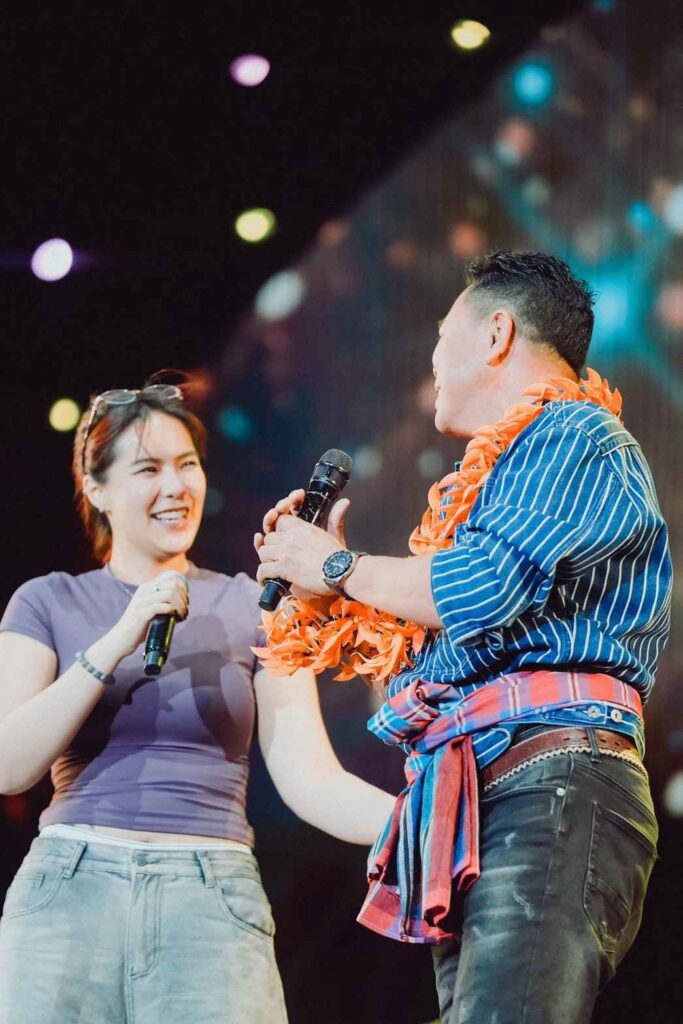 ทันทีที่อินโทรเพลง “ยังฮักไผอีกได้บ่” ดังขึ้น บรรยากาศทั้งงานก็เปลี่ยนเป็นทะเลเสียงกรี๊ดในพริบตา เพราะนี่คือการกลับมาร้องคู่กันสด ๆ บนเวทีเดียวกัน ครั้งแรกในรอบ 5 ปี นับตั้งแต่เพลงถูกปล่อยออกมา