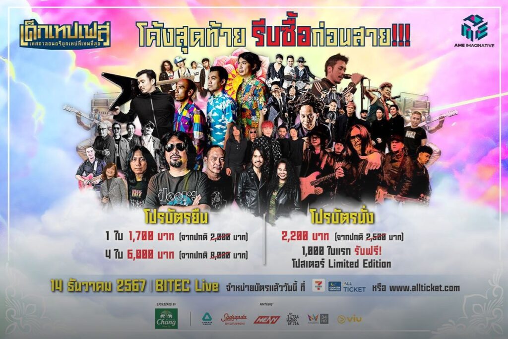 โค้งสุดท้าย งานนี้ใครยังไม่มีบัตรต้องรีบคว้า กับโปรโมชั่นบัตรราคาพิเศษก่อนราคาจริง กับโปรเทพเดี่ยวบัตรยืน 1 ใบ ราคา 1,700 บาท, โปรเทพหมู่บัตรยืน 4 ใบ ราคา 6,000 บาท และบัตรนั่งเทพ ราคา 2,200 บาท ราคานี้สำหรับซื้อบัตรภายในวันที่ 13 ธันวาคม นี้เท่านั้น พิเศษสุด! สำหรับบัตรนั่ง 1,000 ใบแรก รับฟรี โปสเตอร์ Limited Edition ซื้อบัตรได้ที่ Counter Service ใน 7-Eleven ทุกสาขา และที่ https://www.allticket.com/event/dektapefest ติดตามรายละเอียดเพิ่มเติมได้ที่: Facebook: คอนเสิร์ตเด็กเทป และ Sudsapda IG: @Dektapefest @Sudsapda แล้วเตรียมไปสนุกรำลึกความทรงจำไปด้วยกัน