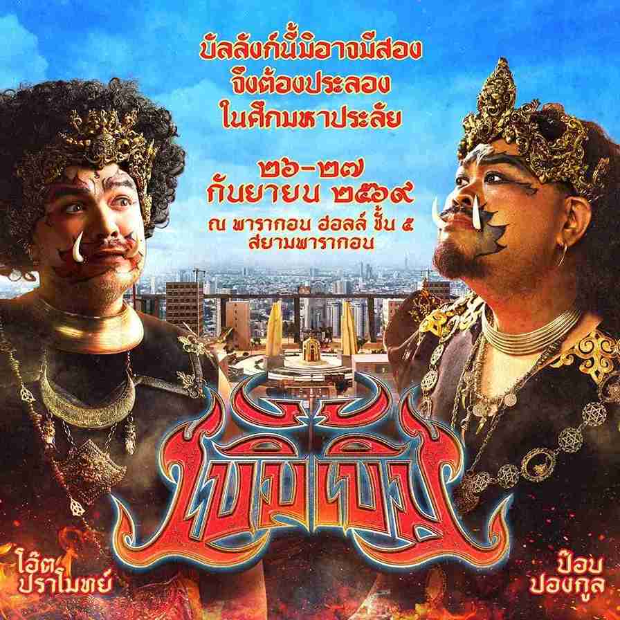จากภาพทีเซอร์ที่ปล่อยออกมา บรรยากาศถูกวางมาในโทน “ยักษ์ชนยักษ์” แบบชัดเจน เหมือนกำลังเชิญชวนให้ผู้ชมเข้าสู่ศึกประลองแห่งตำนานที่ไม่ได้ตัดสินกันด้วยกำลัง แต่ตัดสินกันด้วยพลังความเว่อร์ ความมัน และเสน่ห์แบบฉบับโอ๊ต-ป๊อบที่แฟน ๆ คุ้นกันดี งานนี้จึงมีทั้งความขำ ความขลัง และความอลังการผสมกันอยู่ในทีเดียว