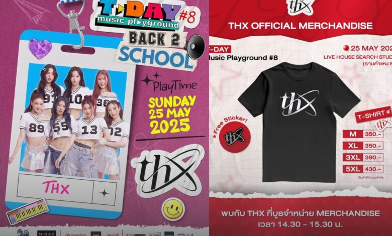 ครั้งแรกกับการเปิดตัว Merchandise ของสาวๆ วง THX (แธงซ์) กับเสื้อยืดชื่อวงสุดพิเศษที่พร้อมเปิดจำหน่ายในคอนเสิร์ต T-Day Music Playground “สนามเล่นดนตรี ของคนดนตรี” ครั้งที่ 8 ในวันที่ 25 พฤษภาคมนี้ Live House Search Studio  รามคำแหง 81