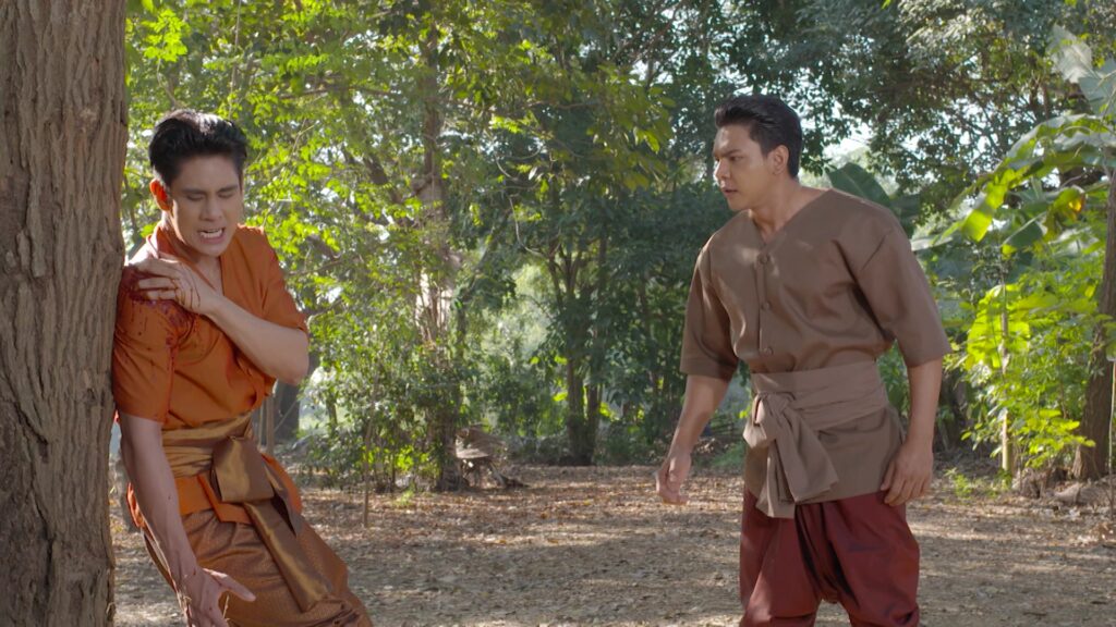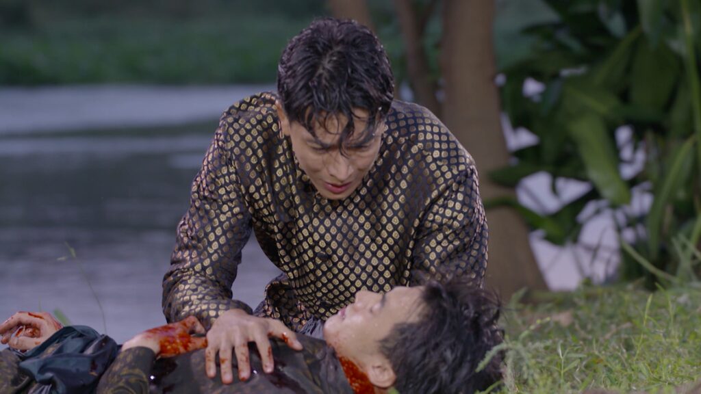 เป็นฉากที่ ตะเภาแก้ว(เทียน) ตะเภาทอง(ไอซ์) เดินทางมาส่งทิว(เบส) กลับนนทบุรีที่ท่าน้ำ ไกรทอง(กอล์ฟ) ก็มาส่งด้วยแต่แอบมองอยู่ห่าง ๆ เพราะทั้งคู่กำลังผิดใจกันอยู่ ในระหว่างที่ทิวกำลังเดินทางกลับ จระเข้ร้ายได้พุ่งชนเรือ จนพลิกคว่ำ และกัดที่กลางตัว ไกรทองเห็นดังนั้นเลยปามีดปักจระเข้กุมภิล(ซัน) ตัวนั้นและรีบลงไปช่วยทิวขึ้นมา ไกรทองเจ็บ และ เสียใจมากที่เห็นเพื่อนอยู่ในสภาพอาการสาหัส