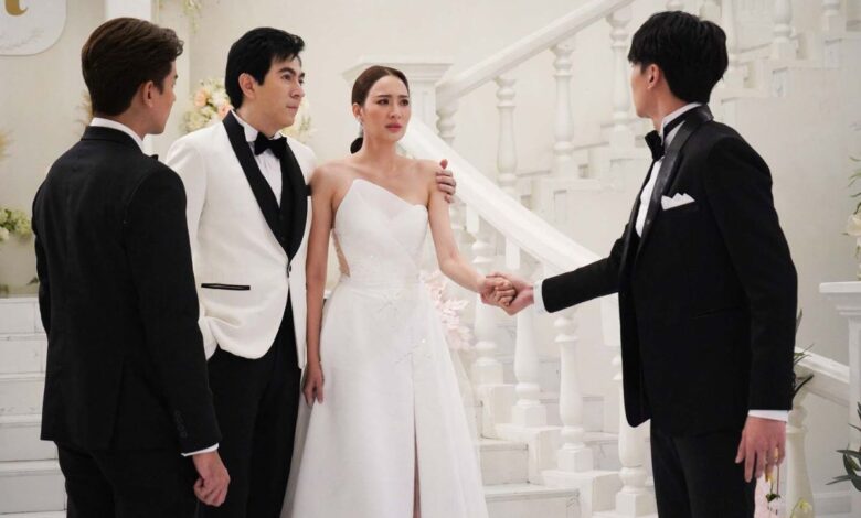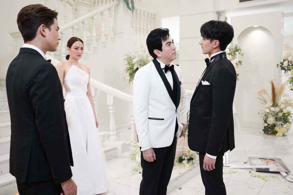 ฉากนี้เนรมิตคฤหาสน์หรูให้กลายเป็นพิธีวิวาห์สุดอลังการ แต่เบื้องหลังความสวยงามกลับอัดแน่นด้วยแรงปะทะทางอารมณ์ เมื่อ ตรัย (กองทัพ พีค) ตัดสินใจบินด่วนกลับจากต่างประเทศ เพื่อหยุดงานแต่งของ ตรีทศ (แซม ยุรนันท์) กับ ดาริณ (แคร์ ฉัตรฑริกา) อดีตคนรักที่เขาเคยฝากหัวใจไว้ทั้งหมด ก่อนเธอจะเลือก “ความมั่นคง” มากกว่า “ความรัก” และหันไปจับมือกับพ่อของเขาเอง