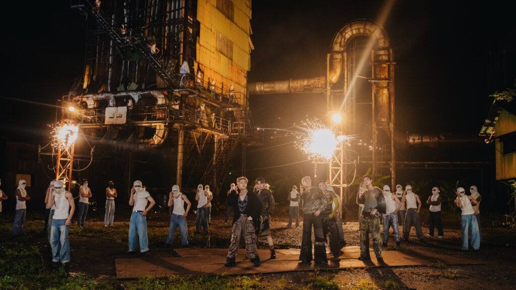 สำหรับการถ่ายทำเพลงนี้นับว่าโหดกว่าเพลงอื่นๆ เพราะนอกจากถ่ายทำถึง 2 วันแล้ว ก่อนวันถ่ายทำไม่กี่วัน จั๋งเกิดอุบัติเหตุระหว่างการซ้อม ต้องพักฟื้นและเลื่อนการถ่ายออกไปเพื่อทำการรักษา เริ่มถ่ายทำซีนแรกในเซตตลาดสดที่เนรมิตขึ้นมาได้อย่างสมจริง เปิดด้วย กฤติน (THE THIEF) เด็กหนุ่ม รับจ้างขนของในตลาด แต่กลับเป็นหัวขโมย เพื่อเลี้ยงปากท้องใช้ชีวิตรอดไปวันๆ สะท้อนปัญหาคุณภาพชีวิต ปากกัดตีนถีบเพื่อความอยู่รอด ซีนถัดมาเป็นซีนโรงงานตีเหล็ก โดยมี ปาล์ม (THE BLACKSMITH) ตัวแทนช่างตีเหล็กฝีมือดี ที่กำลังได้รับการแจกอาหารจากโดรนโดยเหล่าคนมีอำนาจ ที่เหมือนตบหัวแล้วลูบหลัง กดขี่ใช้แรงงาน แต่ตอบแทนด้วยอาหารง่ายๆ ที่กลับเป็นมื้อที่วิเศษของชาวชุมชน ซึ่งยังจะได้เห็นลุคของปาล์มที่โตขึ้นกับฉากออกกำลังกาย เปลี่ยนภาพจากปาล์มที่เคยเป็นน้องหมาน้อยของแฟนคลับ กลายร่างเป็นพี่หมาป่าสุดเซ็กซี่ไปเสียแล้ว บอกเลยว่า ก่อนจะเข้าซีนนี้ปาล์มถึงกับวิดพื้นปั้มกล้ามกันหน้าเซ็ตเลยทีเดียว ถัดมาที่ ปลั๊กกี้ (THE TAILOR) ที่ต้องเรียกว่า เฮียกี้ กับลุคสุดเท่ ในเซตกองผ้าที่มีความสูงกว่า 3 เมตร รายล้อมด้วยช่างเย็บผ้าทั้งเด็กและผู้หญิง ตัวแทนแรงงานในอุตสาหกรรมแฟชั่น ที่มีข่าวให้เห็นอยู่เรื่อยๆ ในเรื่องการใช้แรงงานหนักอย่างต่อเนื่องโดยไม่พัก และการละเมิดสิทธิมนุษยชน เช่นเดียวกับ จั๋ง (THE GANGER) ตัวแทนของกลุ่มคนใช้แรงงานหาเช้ากินค่ำ ซึ่งเป็นซีนที่จั๋งจะได้ยืนบนรถบรรทุกที่วิ่งอยู่ และส่งเสียงเชียร์ปลุกระดมไปพร้อมๆ กับสมาชิกชาวชุมชน ทำเอาพี่จั๋งสนุกกับซีนนี้สุดๆไปเลย และสุดท้าย เน (THE REBEL) ตัวแทนคนรุ่นใหม่ที่ต้องการปฏิวัติเพื่อปกป้องคนในชุมชน เป็นกระบอกเสียงเพื่อปกป้องคนในชุมชน ที่มาในลุคสุดเท่บนหลังม้า ซึ่งนี่เป็นครั้งแรกที่เน ได้ขี่ม้า และก่อนเข้าซีนเนจะต้องทำการฝึกขี่ม้าให้เกิดความคุ้นกันเสียก่อน ซึ่งทั้ง 2 ก็ได้สนิทสนมกันแบบที่ แฟนๆ ต้องอิจฉา เพราะน้องม้าโดนพี่เนตกเข้าให้ ถึงกับมาซบคลอเคลียพี่เนเลยทีเดียว