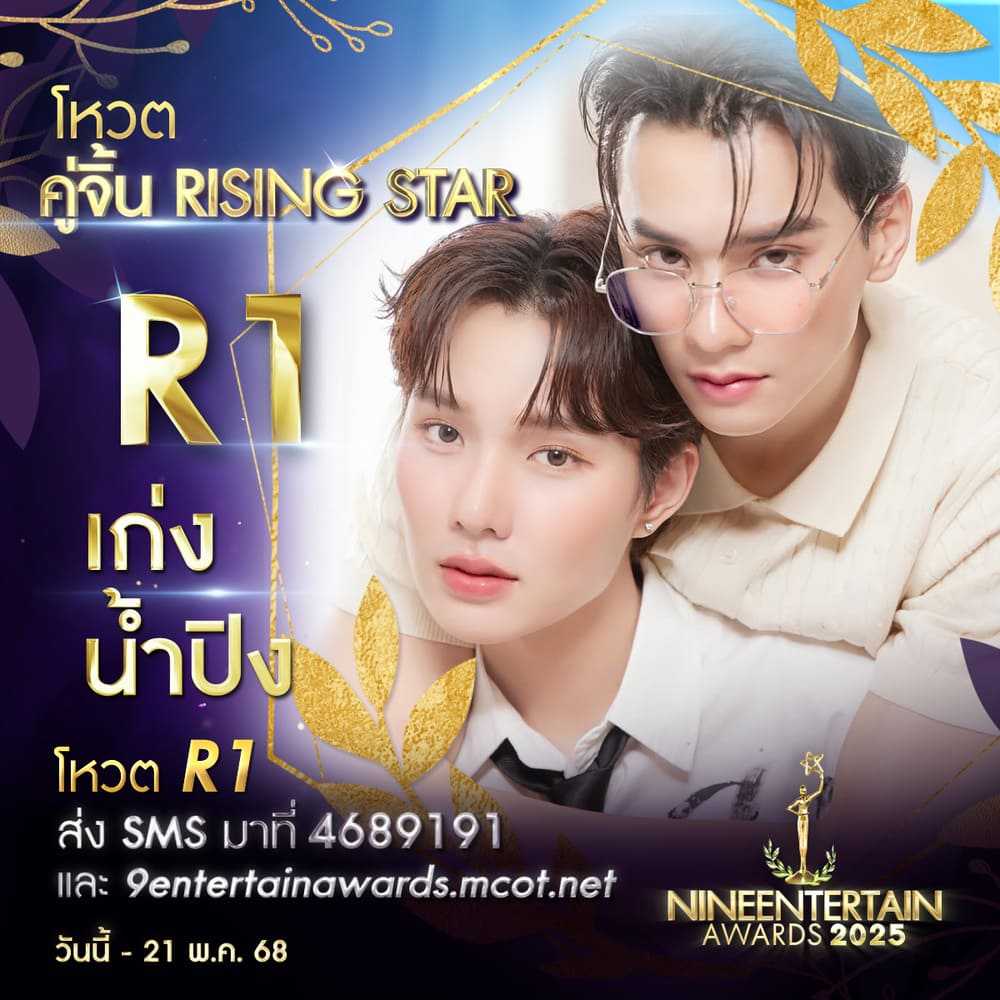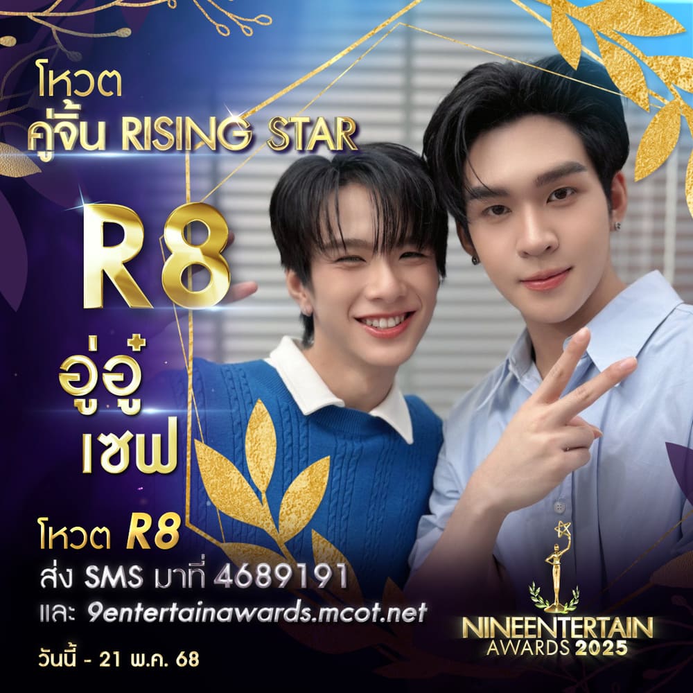 งานประกาศรางวัลหน้าม่านคุณภาพ หลังม่านคุณธรรม “ไนน์เอ็นเตอร์เทน อวอร์ด 2025” ที่ทาง อสมท จัดขึ้นทุกปี เพื่อเป็นกำลังใจ แรงใจ ให้กับนักแสดง ศิลปินในวงการบันเทิงหลากหลายสาขา และหนึ่งในสาขาที่คนทั้งประเทศสามารถร่วมโหวตได้ นั่นก็คือรางวัล “คู่จิ้นRisingStar” ซึ่งตอนนี้เราได้ 9 ผู้ผ่านเข้ารอบ มีทั้งนักแสดงและศิลปินโดยมีการเรียงตามลำดับตามชื่อเล่น