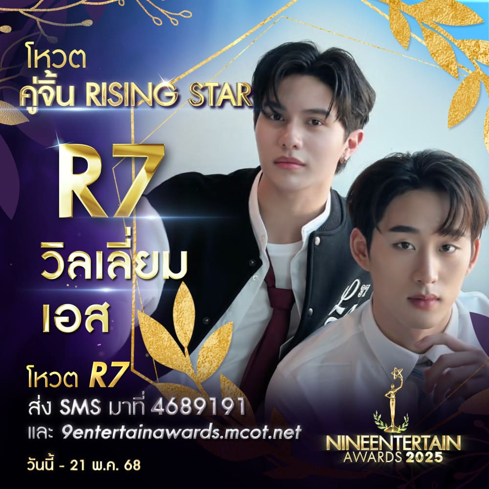 บริษัท อสมท จำกัด (มหาชน) จัดงานประกาศรางวัล “NINEENTTERTAIN AWARDS 2025” (ไนน์เอ็นเตอร์เทนอวอร์ด 2025) โดยไนน์เอ็นเตอร์เทน ล่าสุดพร้อมเปิดโหวต ผู้เข้าชิงรางวัล “คู่จิ้น Rising Star” #9entertainawards2025 #sustainingthevirtue #คู่จิ้นRisingStar