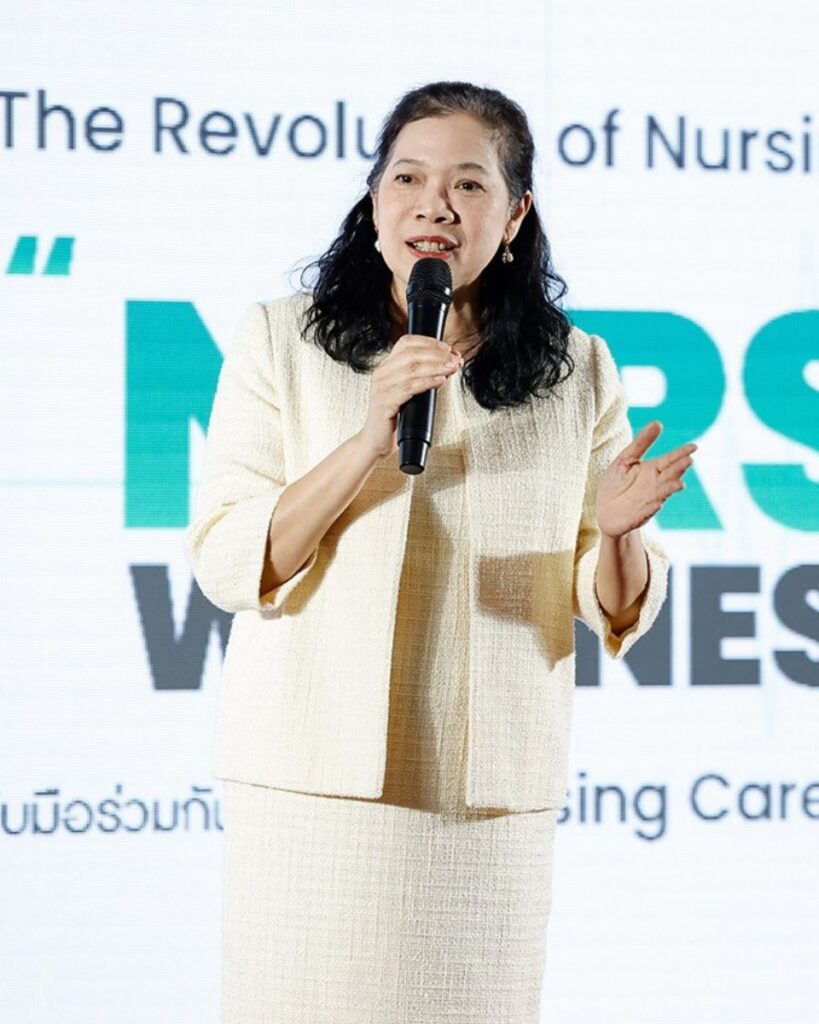 “คุณเสาวภา จงกิตติพงศ์” นักวิชาการสาธารณสุขเชี่ยวชาญ และรองผู้อำนวยการกองสถานพยาบาลและการประกอบโรคศิลปะ กระทรวงสาธารณสุข เสริมต่อว่า “ในปัจจุบันสังคมไทยกําลังก้าวเข้าสู่ยุคสังคมผู้สูงอายุ ซึ่งเป็นความท้าทายที่เราทุกคนต้องร่วมมือกันในการรับมืออย่างมีประสิทธิภาพ กระทรวงสาธารณสุขจึงให้ความสําคัญกับการยกระดับการดูแลสุขภาพของประชาชน โดยเฉพาะการดูแลผู้สูงอายุ มุ่งผลักดันการดูแลสุขภาพเชิงรุก ด้วยการนําเทคโนโลยีและนวัตกรรมที่ทันสมัยมาประยุกต์ใช้ เพื่อยกระดับคุณภาพชีวิตของคนไทยให้ดีขึ้น โดยเฉพาะในส่วนของการพัฒนา Nursing Care ให้เป็น Nursing: Wellness Care ซึ่งเป็นการดูแลที่ไม่เพียงแต่เน้นการรักษา แต่ยังรวมถึงการส่งเสริมสุขภาพและการสร้างความเป็นอยู่ที่ดีในทุกด้าน กระทรวงสาธารณสุขพร้อมที่จะสนับสนุนทุกภาคส่วนในการพัฒนาและยกระดับมาตรฐานการดูแลสุขภาพของผู้สูงอายุ เพื่อให้พวกเขาสามารถมีชีวิตที่สมบูรณ์และมีคุณภาพในทุกช่วงวัย และสร้างสังคมที่ยั่งยืนและมีสุขภาพดีไปพร้อมกัน”